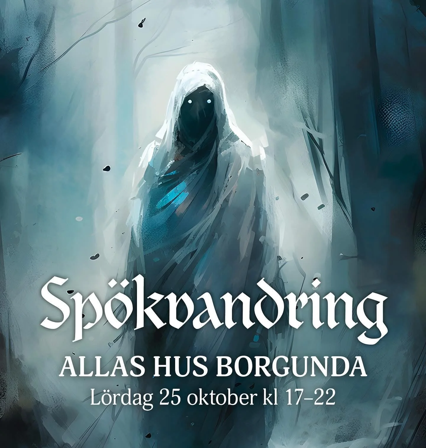 Vågar du följa med på spökvandring i Borgunda? En spännande vandring på mörka skogsstigar och till kusliga gamla gårdar genom byn. Vid 24 stationer överraskas du av det ena värre än det andra! Det blir en kväll fylld av rysningar och skratt – perfekt för alla som gillar en nypa spänning. Första timmen för de lite mer lättskrämda. Entrén/utsläppet är i tältet utomhus i slänten upp mot kyrkan.